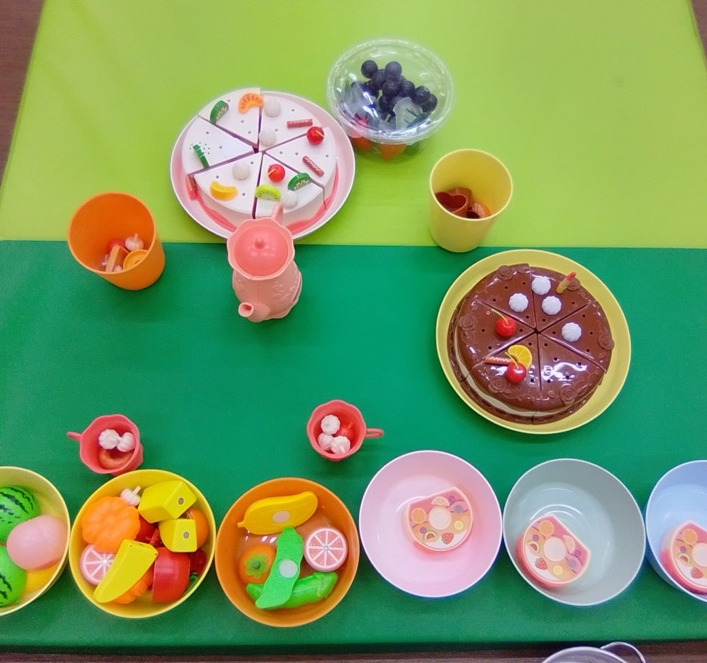 お友達同士でやりとりをしながら、お店屋さんごっこでお料理をしたり、